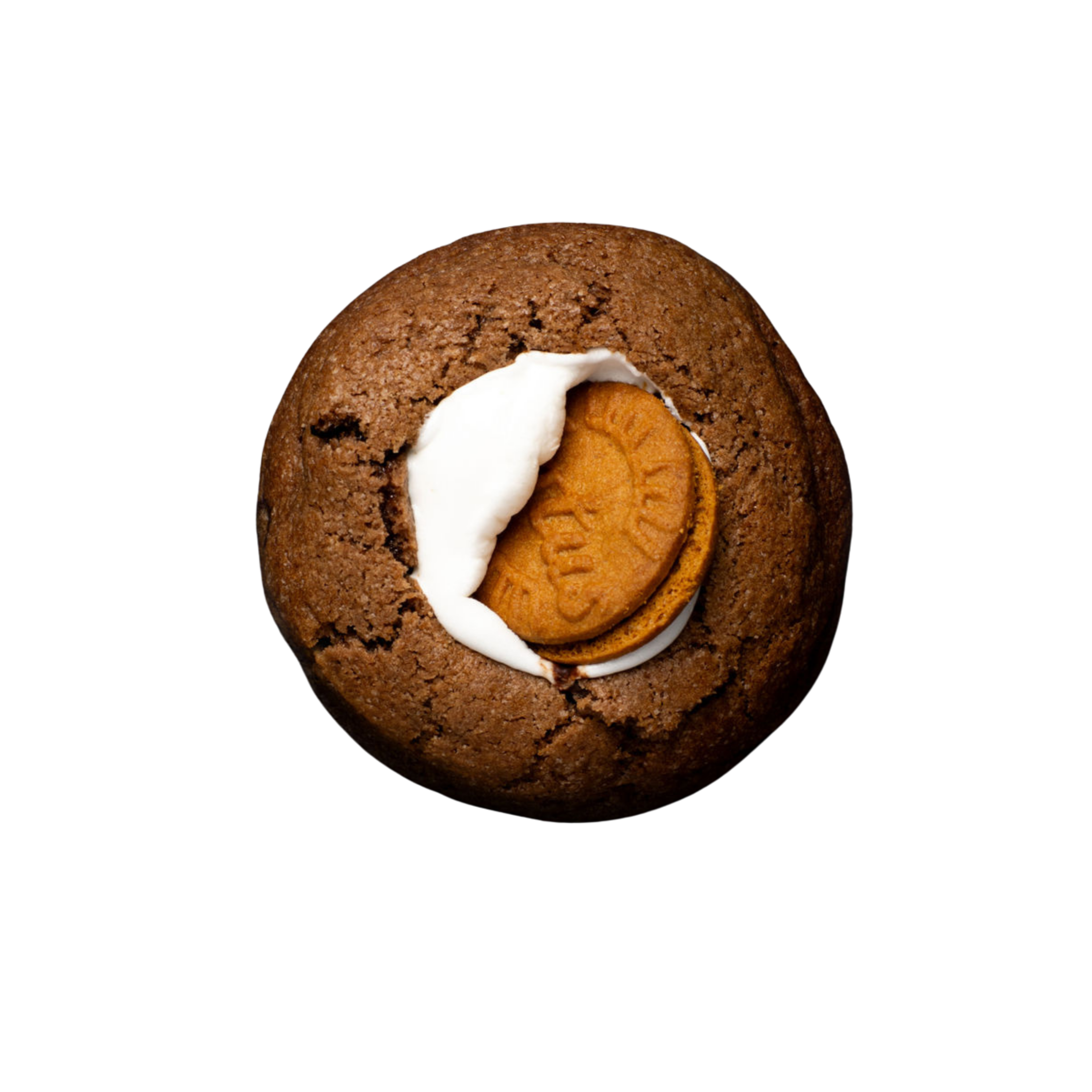 A delightful s'mores-inspired cookie with gooey marshmallow, rich chocolate, and the unique taste of Lotus Biscoff.